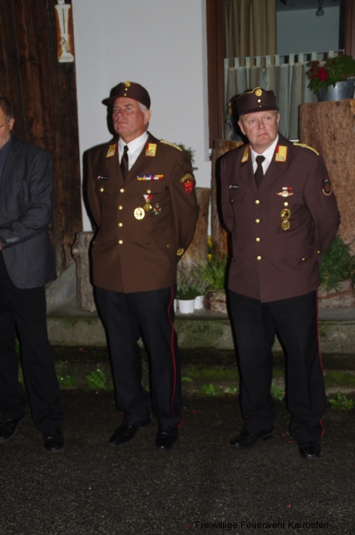 Im Anschluss an die Verleihung auf Schloss Tirol fand ein Empfang beim Trenkwalder in Karrösten statt. Zahlreiche Feuerwehrfunktionäre – an der Spitze Landesfeuerwehrkommandant LBD Ing. Peter Hölzl – der gesamte Bezirksausschuss, BGM Oswald Krabacher, die Feuerwehr, Schützenabordnung, Musikkapelle und natürlich die Familie gratulierten dem Geehrten. (c) Föger Werner
