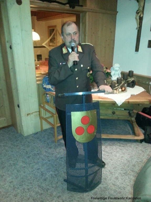 Am 7. Dezember 2015 fand die Jahreshauptversammlung der FF Karrösten im Gasthof Trenkwalder statt. Die Begrüßung der Ehrengäste und anwesenden Feuerwehrkameraden erfolgte durch den Kommandanten Stefan Schatz. Nach dem Totengedenken folgten der Bericht der Jahreshauptversammlung 2014 und der Bericht der Finanzen. Der Kommandant fasste anschließend die Ereignisse und Fakten des Jahres 2015 zusammen.